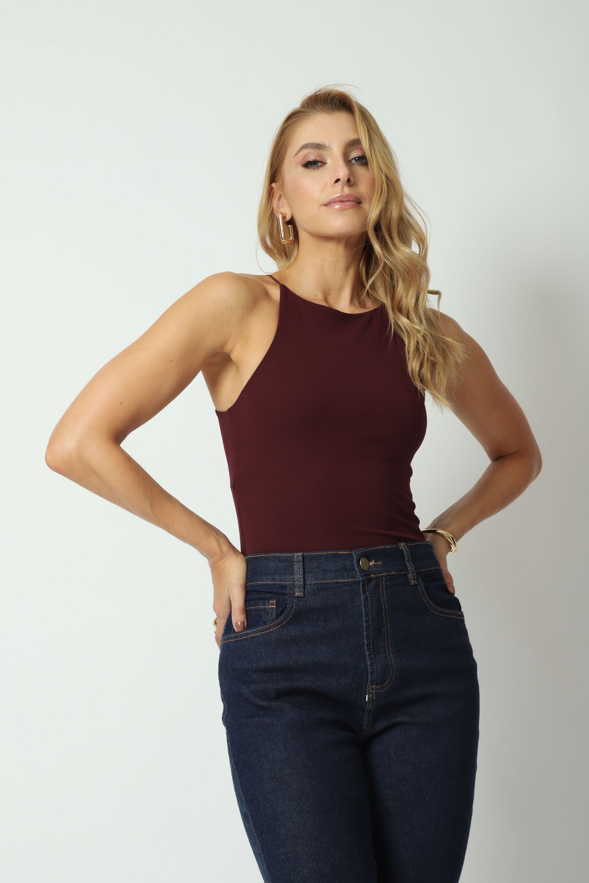 Descrição Regata canelada, alças finas,decote fechado, modelagem justa ao corpo e comprimento alongado. Confeccionada em malha canelada uma mistura de viscose e elastano, toque macio e sedoso e efeito anti pilling que não forma bolinha.