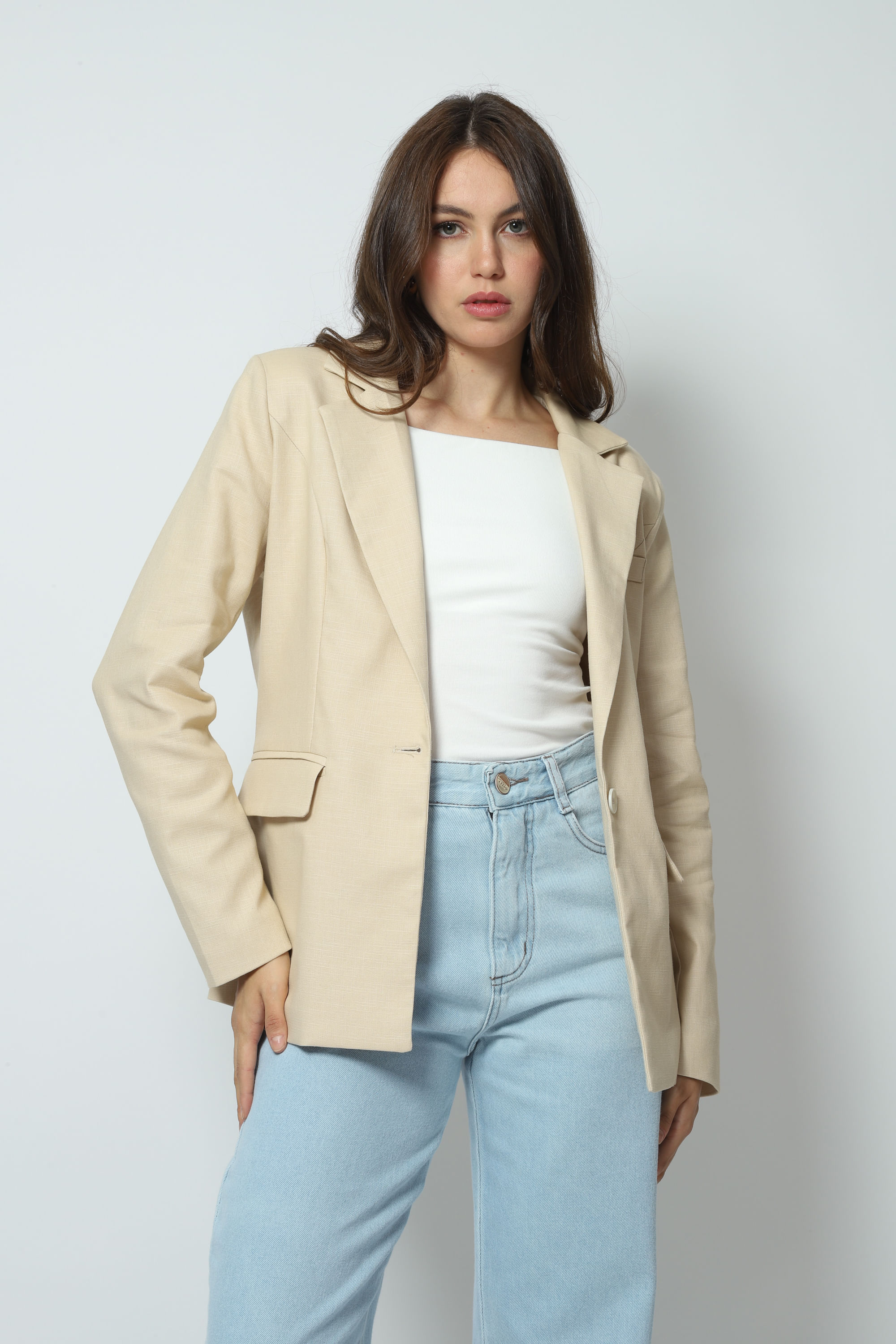Blazer alfaiataria, gola com lapela, manga comprida, bolsos com aba, comprimento médio e abotoamento frontal por botão. Confeccionado em uma mistura de algodão, viscose e elastano. Possui forro 100% Poliéster.