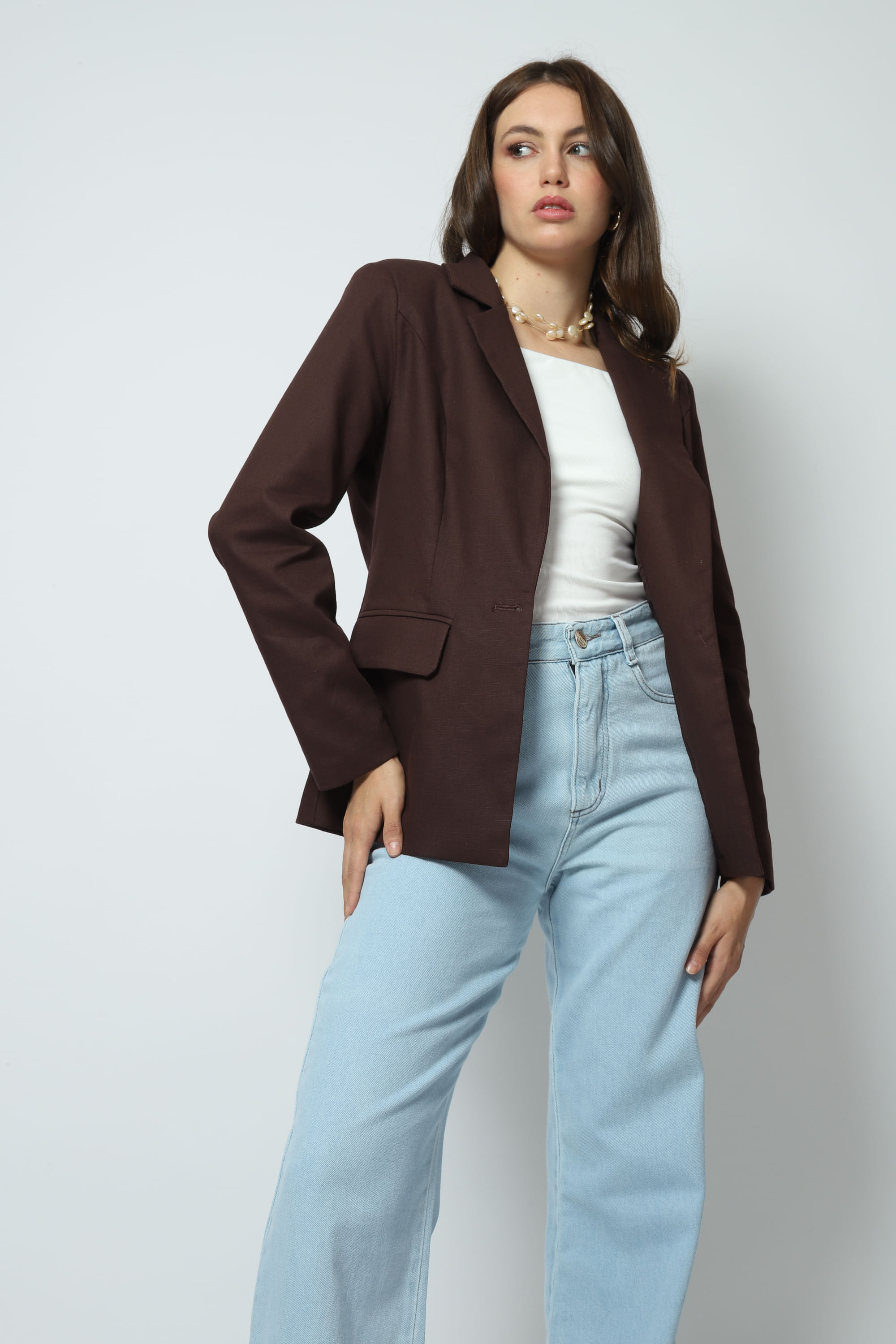 Blazer alfaiataria, gola com lapela, manga comprida, bolsos com aba, comprimento médio e abotoamento frontal por botão. Confeccionado em uma mistura de algodão, viscose e elastano. Possui forro 100% Poliéster.