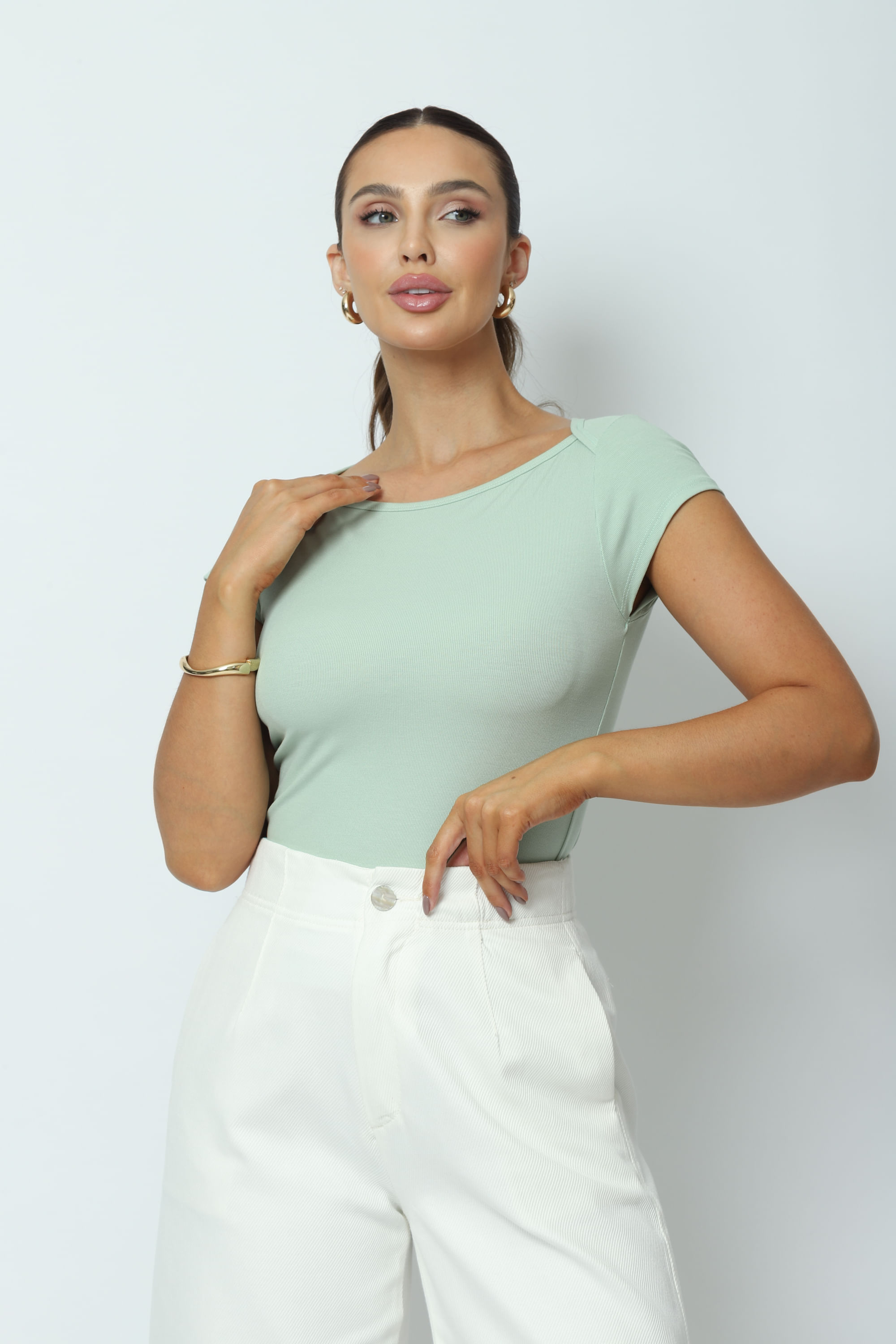 Blusa decote canoa, manga curta,modelagem justa ao corpo e comprimento regular. Confeccionada em malha canelada uma mistura de viscose e elastano, toque macio e sedoso e efeito anti pilling que não forma bolinha.