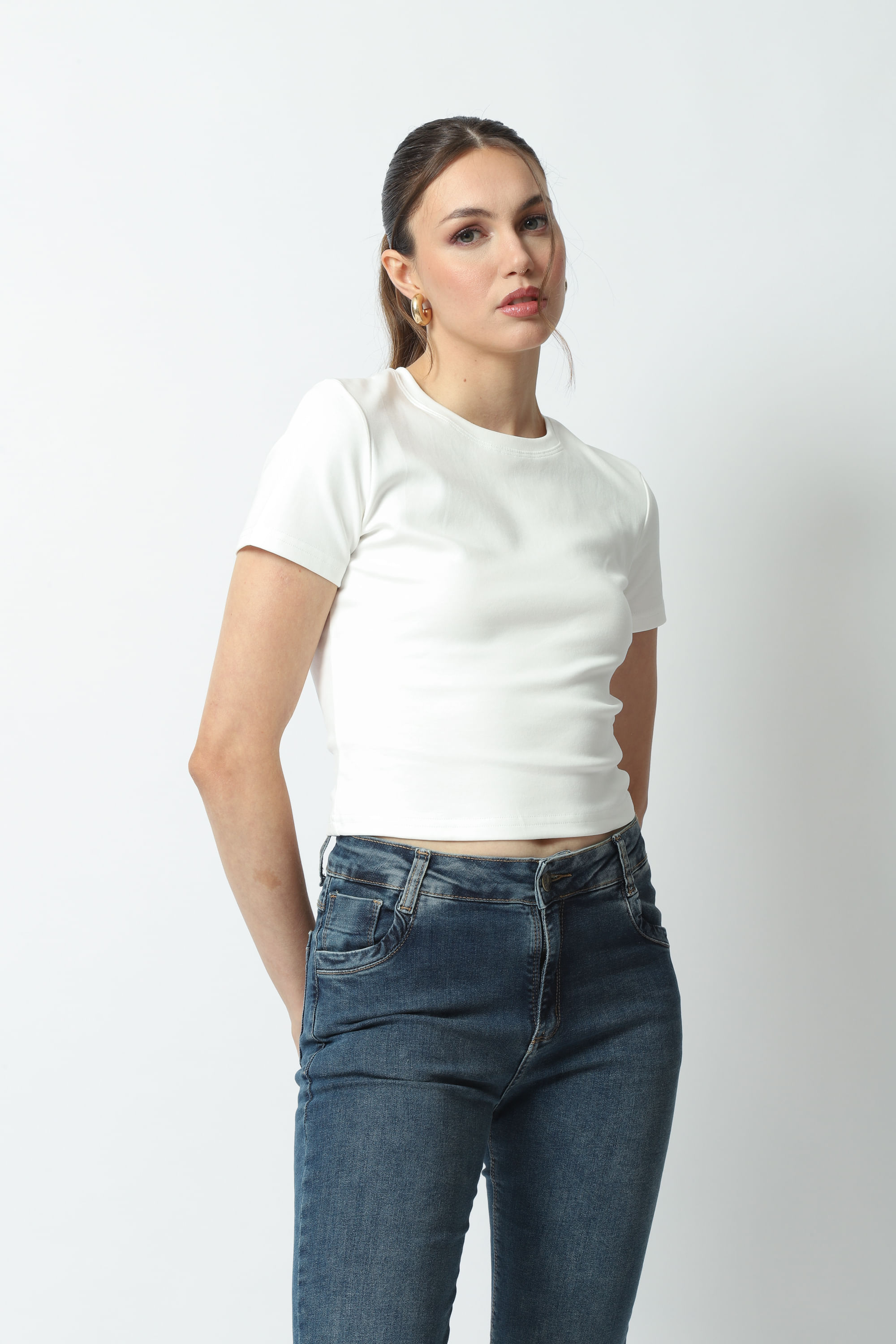 Descrição Blusa manga curta, gola redonda, comprimento curto e modelagem fit. Tecido leve com toque extremamente macio. Confeccionado em algodão Pima, conhecido pela sua suavidade e durabilidade. Maciez e brilho sedoso, e não forma bolinha.