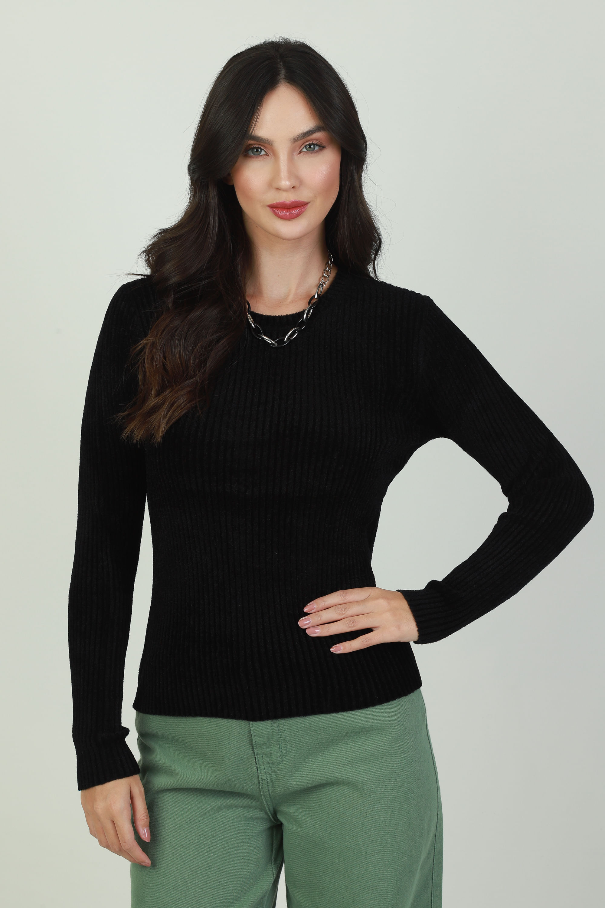 Detalhe: Blusa Tricot decote redondo, modelagem mais justa.
