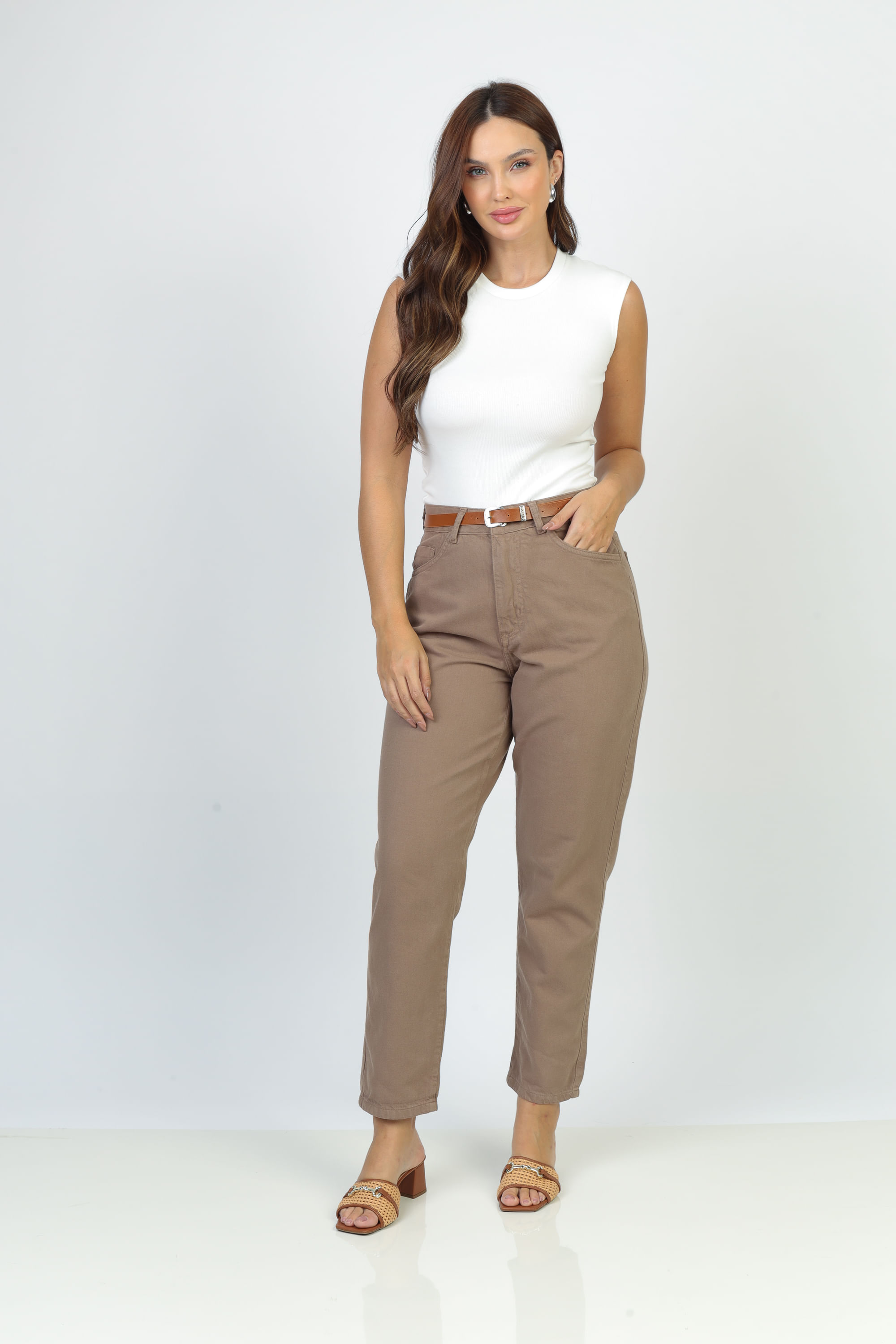 Modelo: Calça Sarja Mom com Cinto