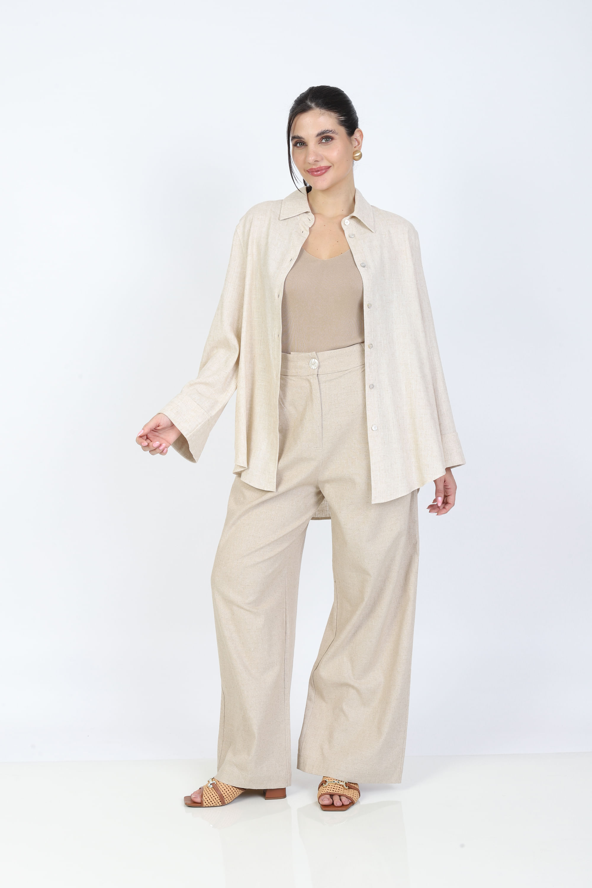 Composição: 75% Viscose 22% Linho 3% Elastano