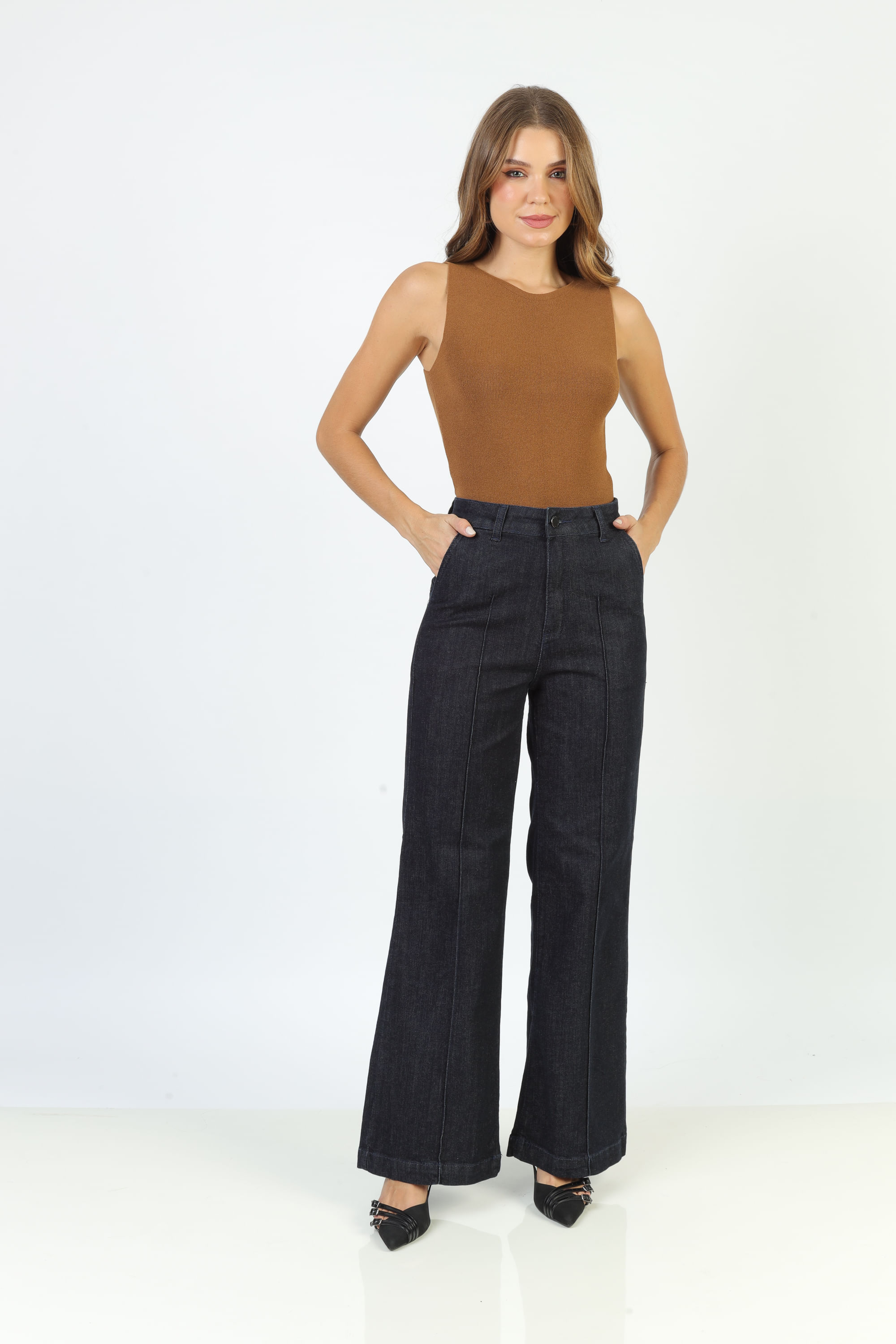 Modelo: Calça Jeans Reta com Nervura