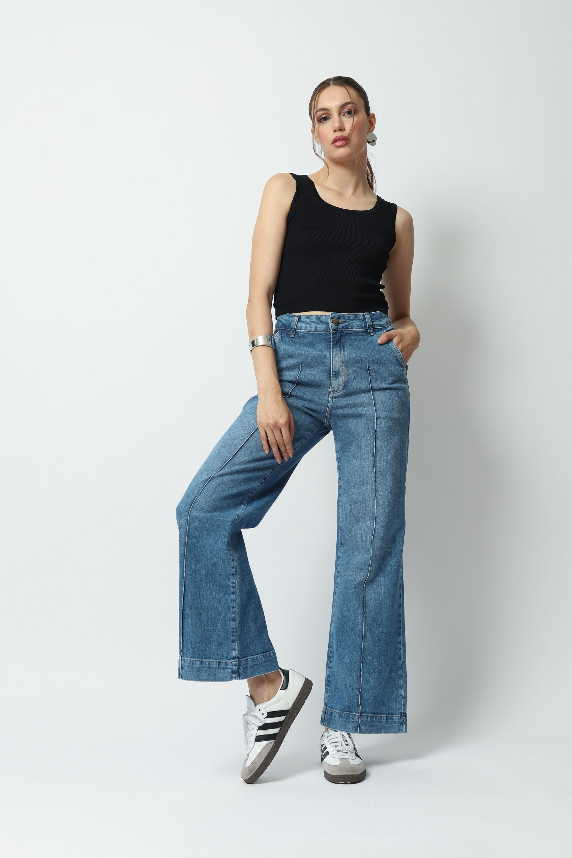 Modelo: Calça Jeans Reta com Nervura