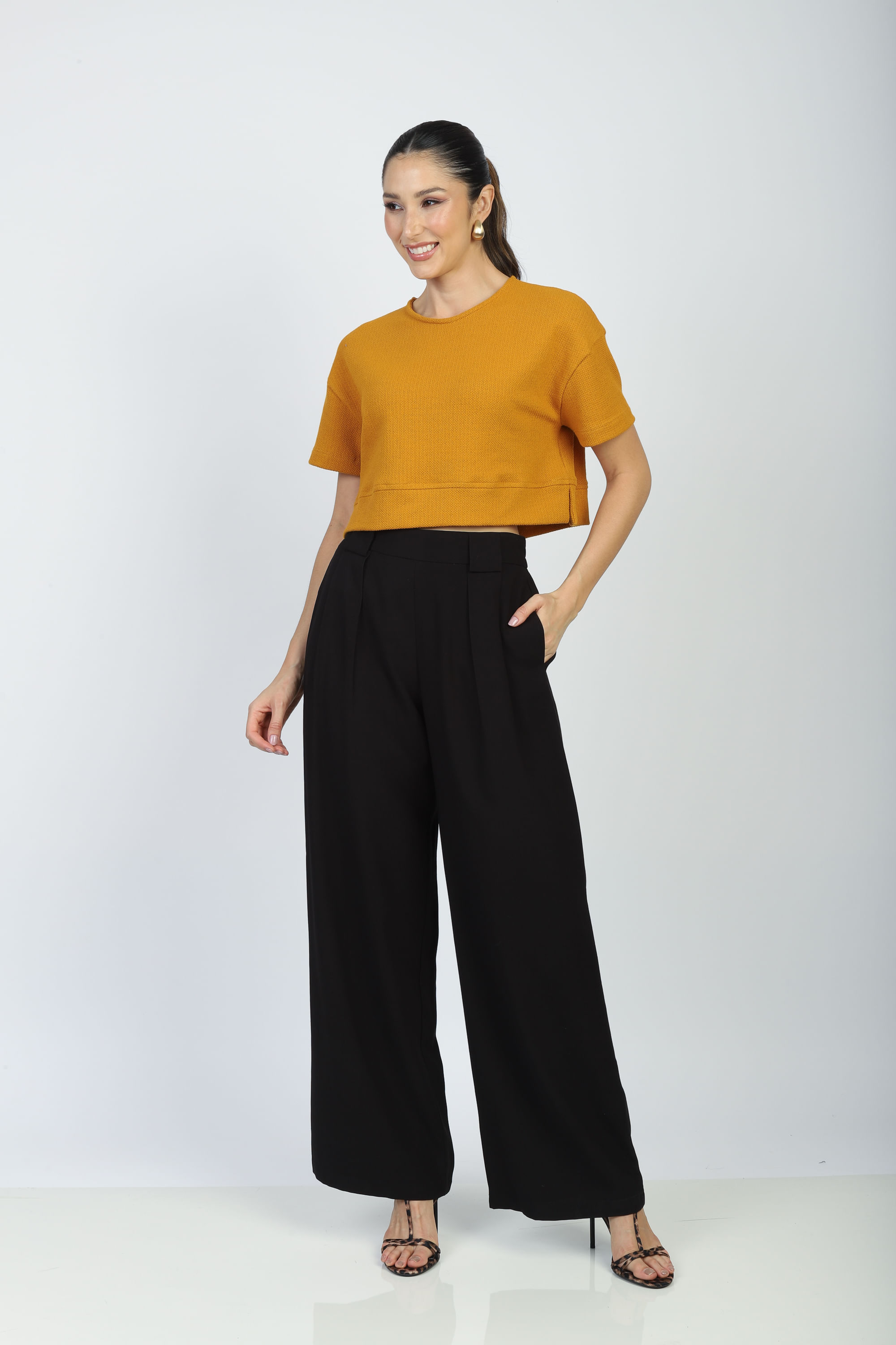 Calça Alfaiataria, cintura alta, modelagem reta, pregas na frente, bolsos laterais e comprimento longo. Cós com passantes largos na frente, e cós elástico para um ajuste perfeito.