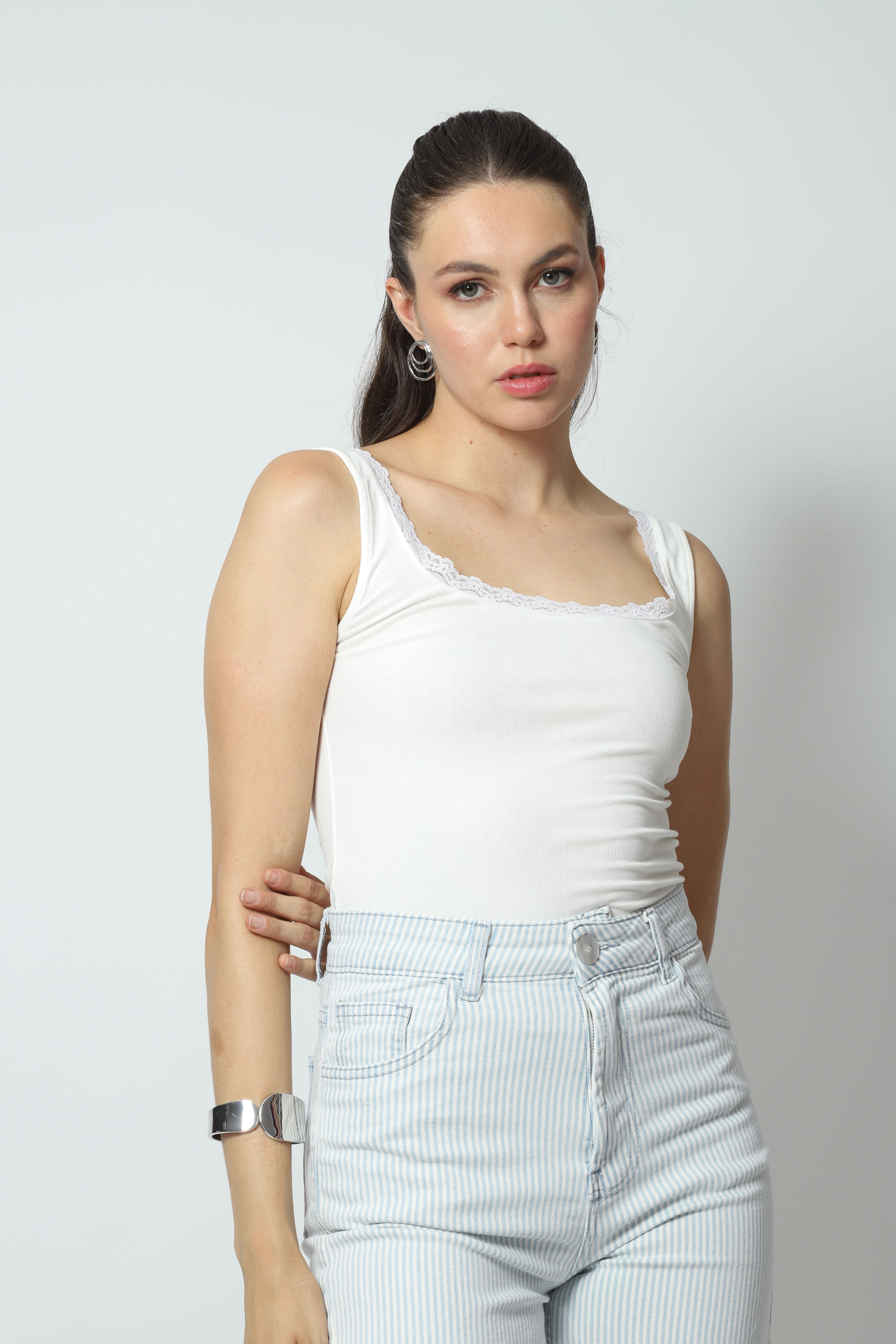 Modelo: Regata Canelada Detalhe Renda