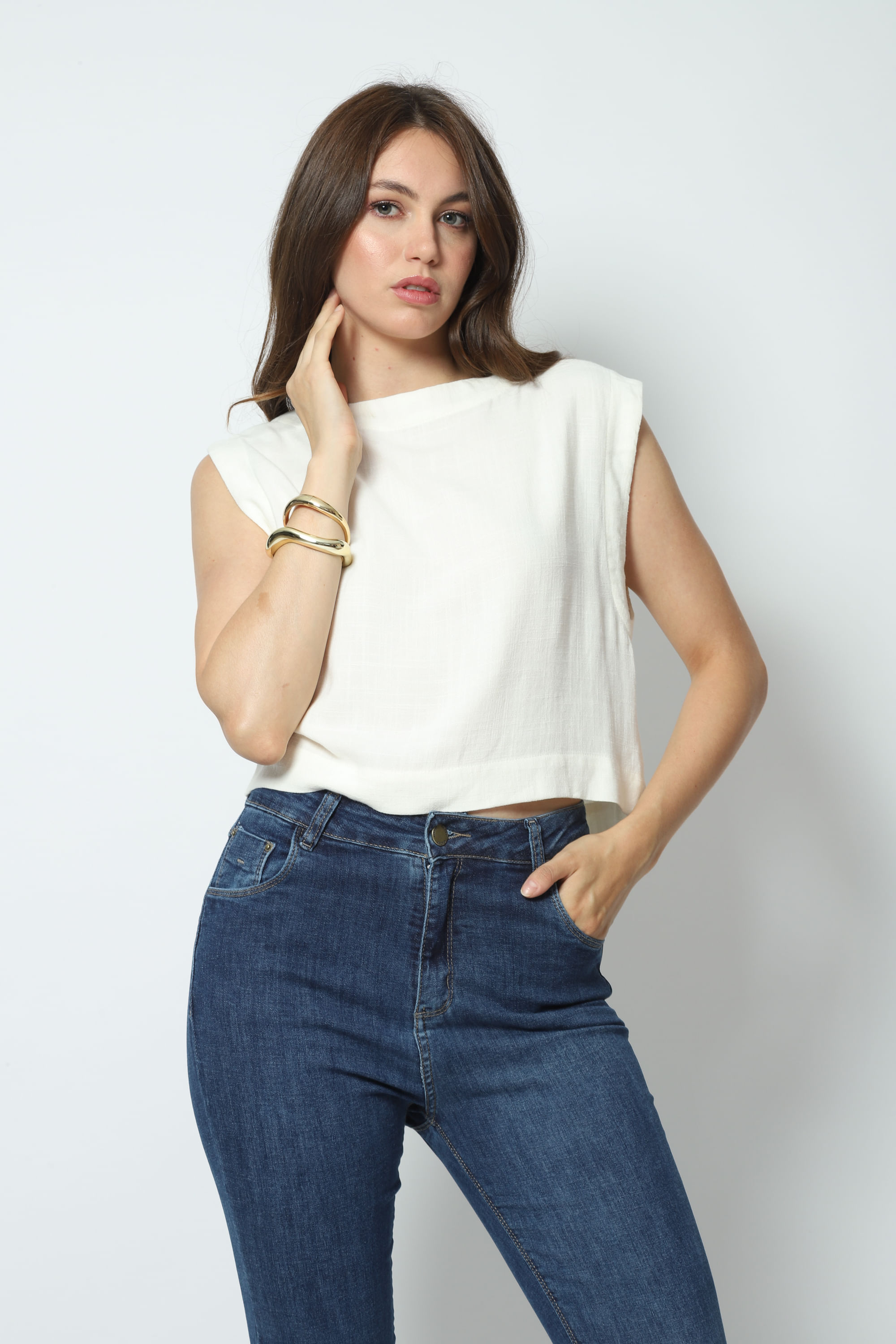 Modelo: Regata Cropped Linho Misto