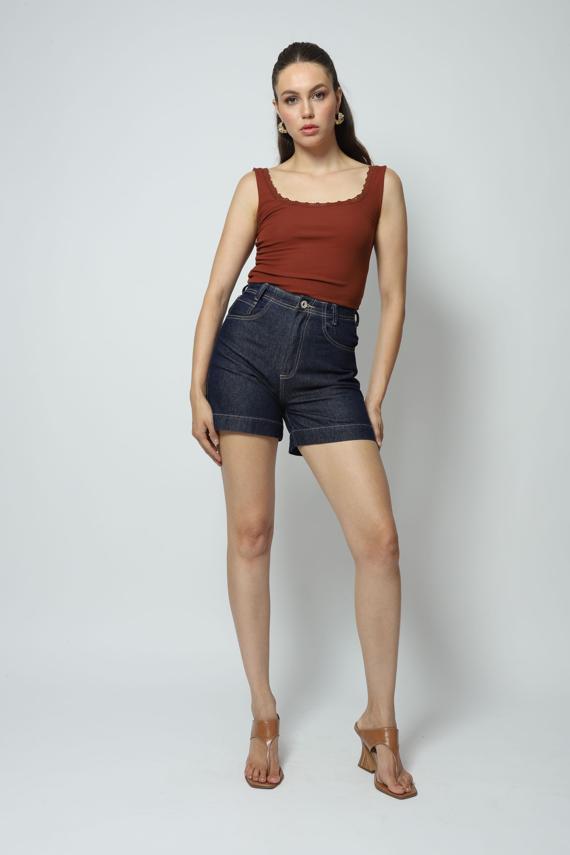 Modelo: Shorts Jeans Barra Larga