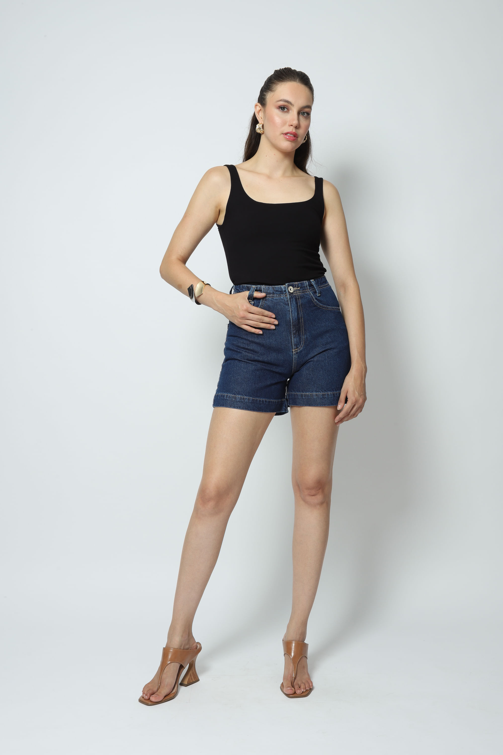 Modelo: Shorts Jeans Barra Larga