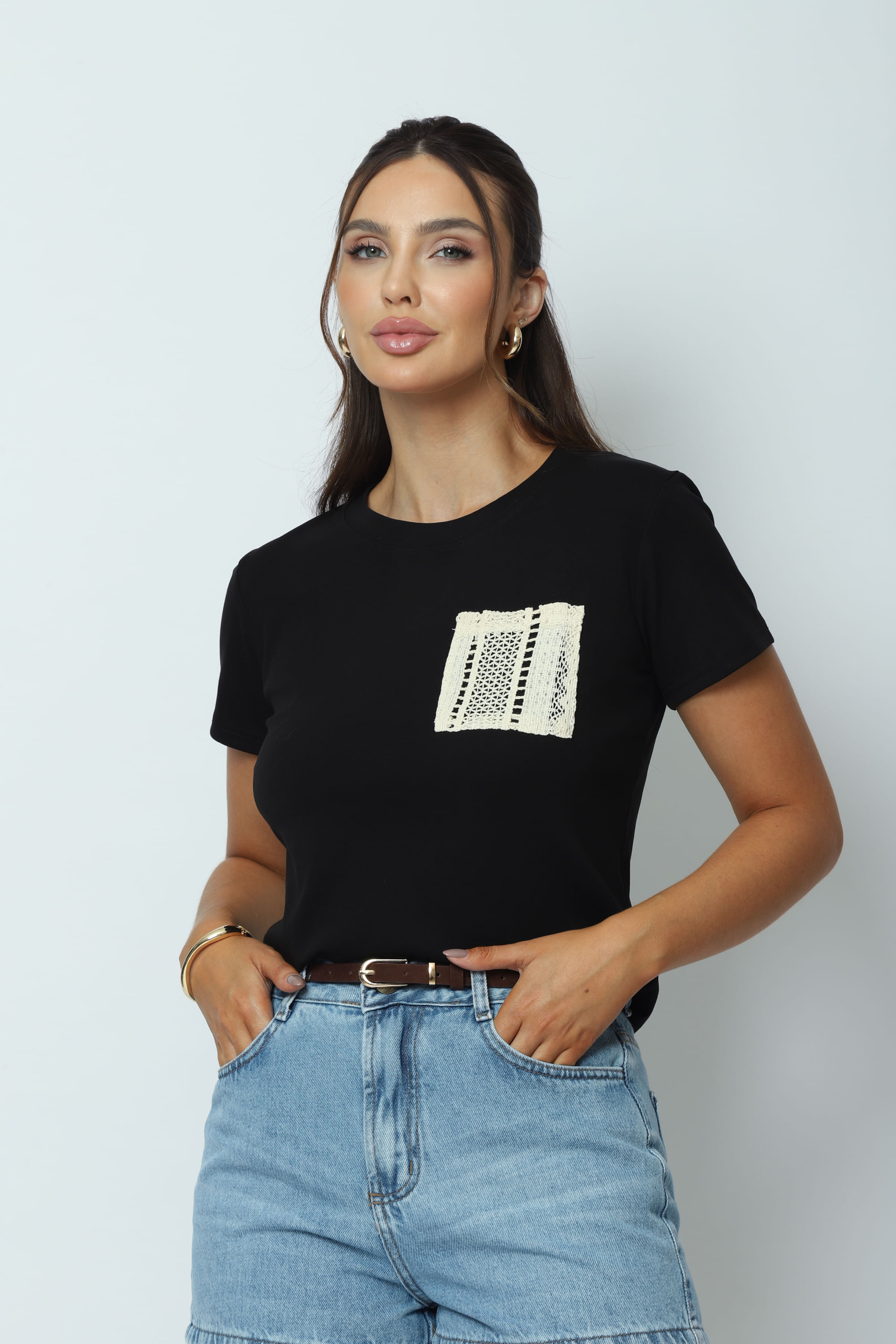 Descrição T-shirt com bolso trabalhado, gola redonda, comprimento regular, manga curta e modelagem reta. T-shirt confeccionada em uma mistura de algodão com elastano.