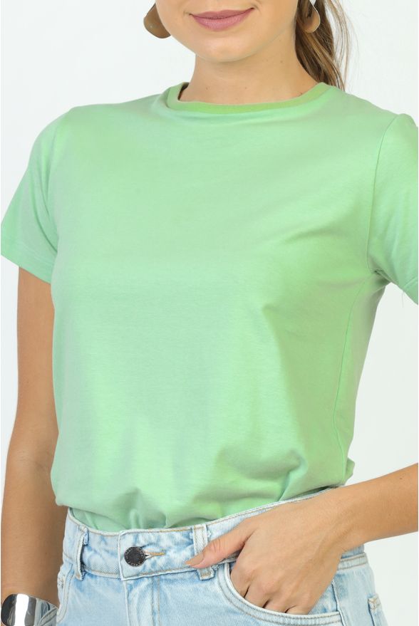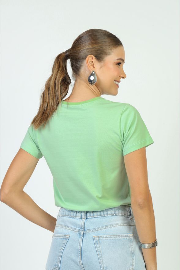 Descrição T-shirt de mangas curtas, gola redonda em punho, comprimento médio, modelagem reta e soltinha no corpo. A T-shirt é confeccionada em algodão egípcio que é uma fibra nobre com um toque super macio e sedoso com maior durabilidade.