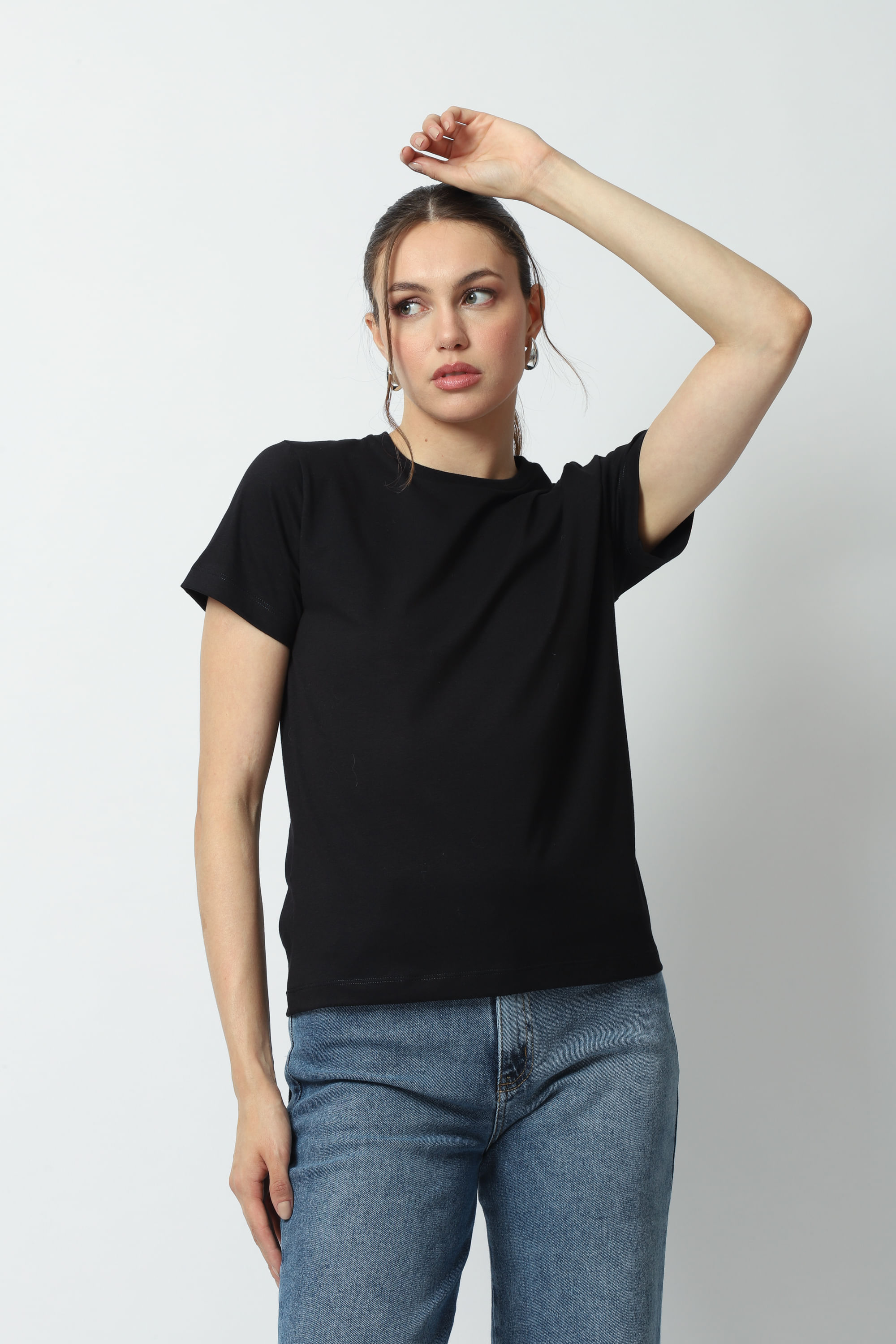Descrição Blusa manga curta, gola redonda, comprimento regular e modelagem reta com caimento perfeito. Tecido leve com toque extremamente macio e agradável. Confeccionado em algodão sustentável.