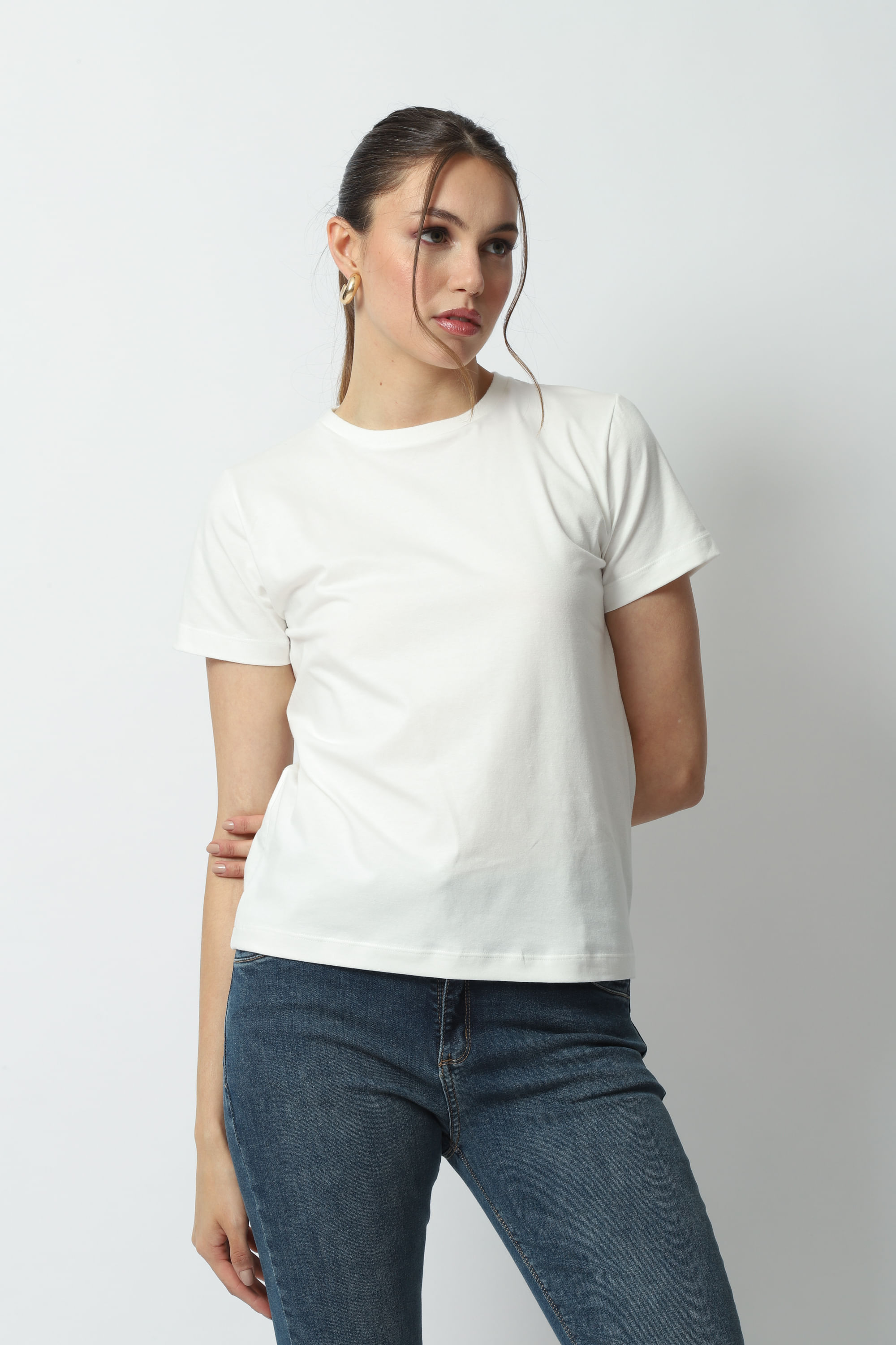 Blusa manga curta, gola redonda, comprimento regular e modelagem reta com caimento perfeito. Tecido leve com toque extremamente macio e agradável. Confeccionado em algodão sustentável.
