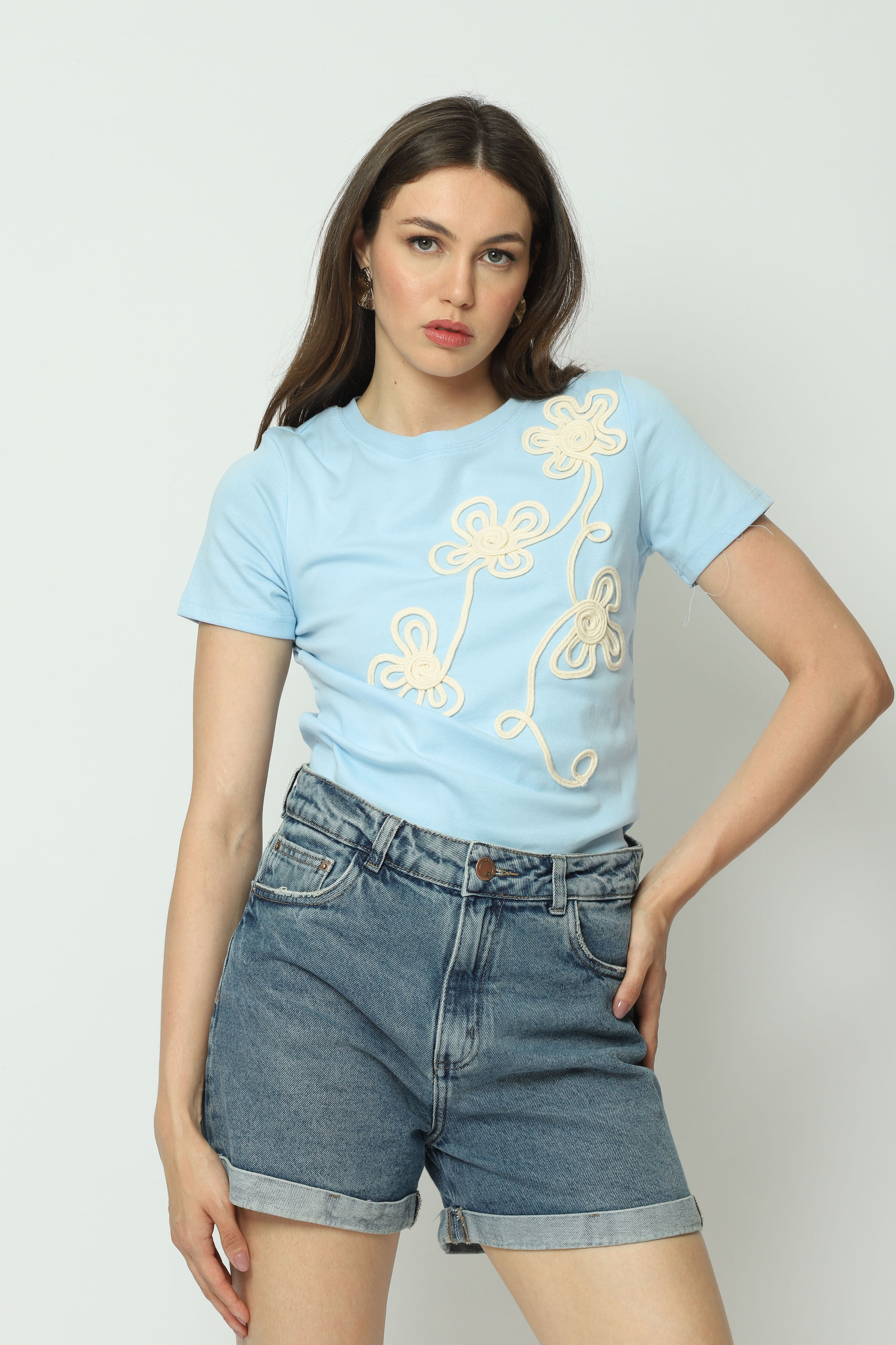 Modelo: T-shirt Flor Bordada